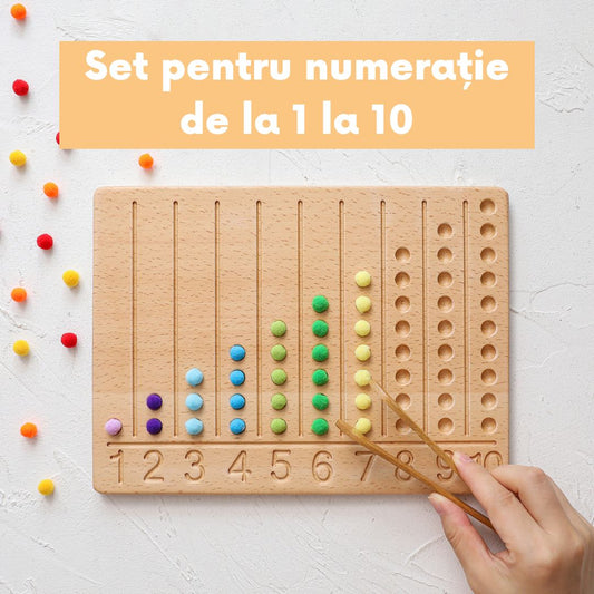 Joc educativ Montessori din lemn, set pentru numeratie de la 1 la 10