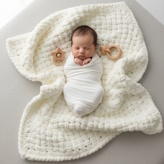 Pătură handmade Alize Puffy Crem pentru bebeluși - 90cm x 90cm