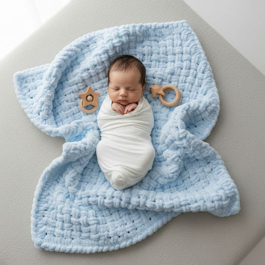 Pătură handmade Alize Puffy Bleu pentru bebeluși - 90cm x 90cm
