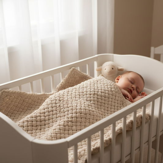 Pătură handmade Alize Puffy Bej pentru bebeluși - 90cm x 90cm